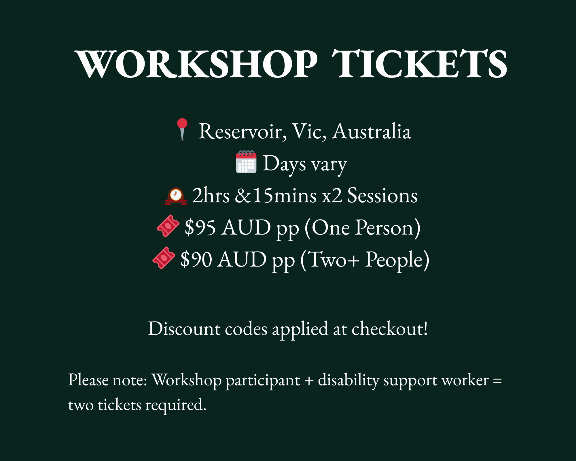 📍 Reservoir, Vic, Australia 🗓️ Days vary 🕰️ 2hrs &15mins x2 Sessions 🎟️ $90-$95 AUD pp